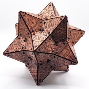 This one of a kind polyhedral is a Dual of 4 Frequency Icosahedral Geodesic Sphere that uses a new “lego-like” technique for assembly of a polyhedral using 3D printed internal pieces with laser cut faces. This has been in the works for months, and wasn’t exactly sure it would work. I designed each connector to also house an LED pixel bulb so each face will light up. The faces were laser cut using Milky White Cast Acrylic from Houston Acrylic. Polyhedral face pieces were 3D printed on a Bambu X1-Carbon. The internal WLED controller is a Dig2Go 3 powered by plugging into socket power adapter.