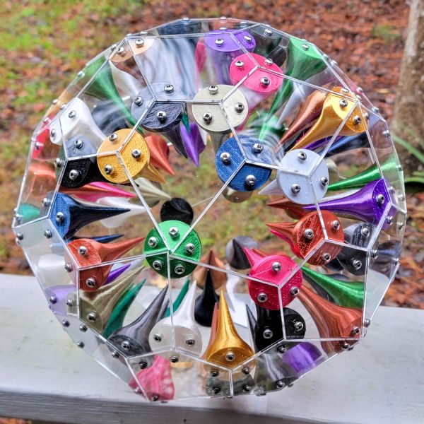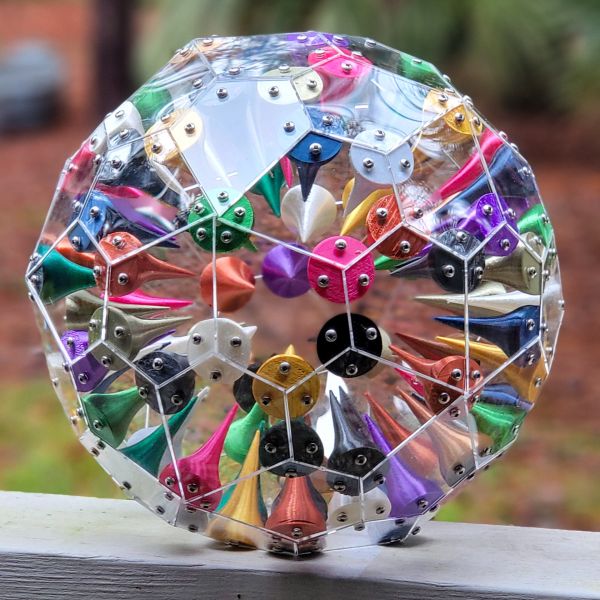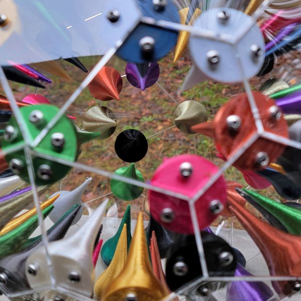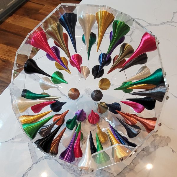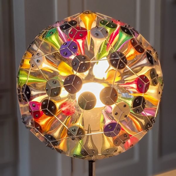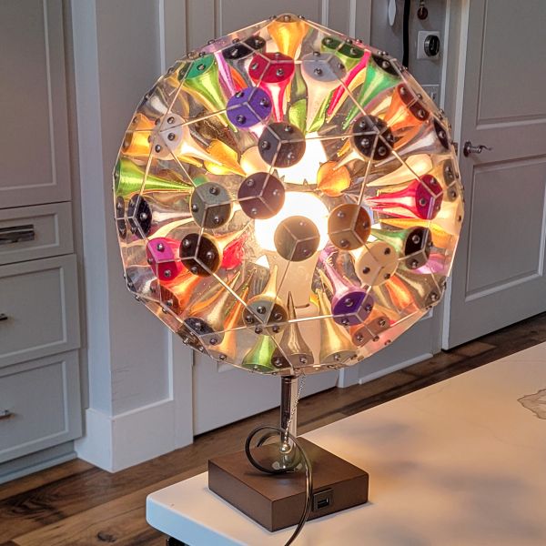 Custom, one of a kind table lamp with internal 3d printed multi-colored spikes. Multicolored LED smartbulb included.