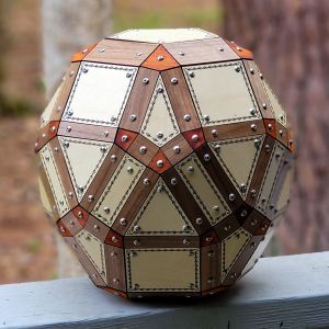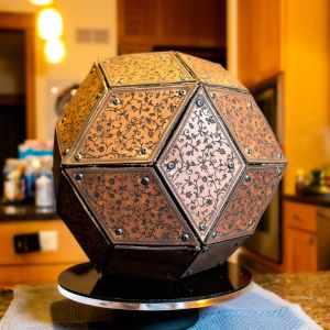 This one of a kind polyhedral is a Dual of 4 Frequency Icosahedral Geodesic Sphere that uses a new “lego-like” technique for assembly of a polyhedral using 3D printed internal pieces with laser cut faces. This has been in the works for months, and wasn’t exactly sure it would work. I designed each connector to also house an LED pixel bulb so each face will light up. The faces were laser cut using Milky White Cast Acrylic from Houston Acrylic. Polyhedral face pieces were 3D printed on a Bambu X1-Carbon. The internal WLED controller is a Dig2Go 3 powered by plugging into socket power adapter.