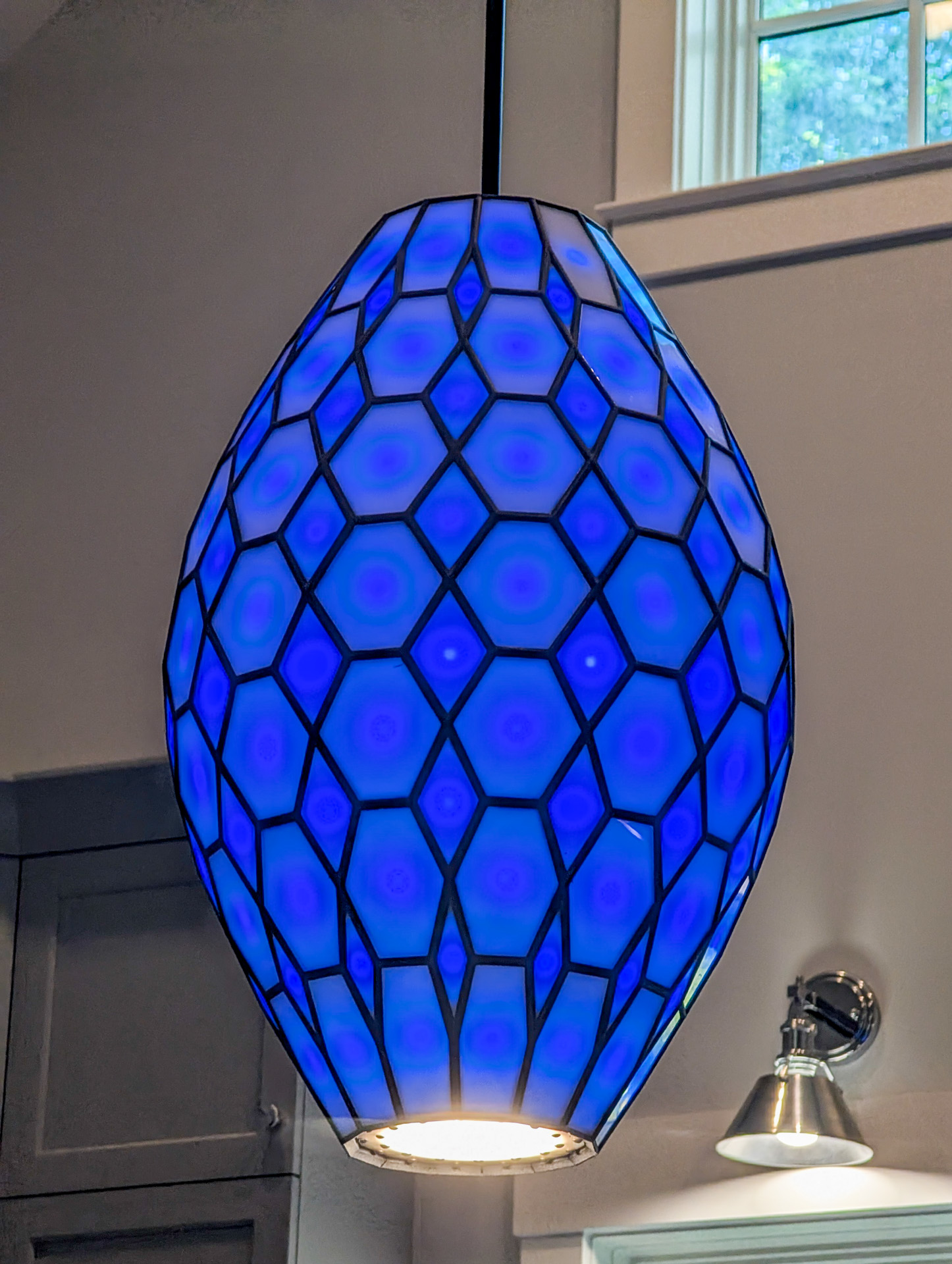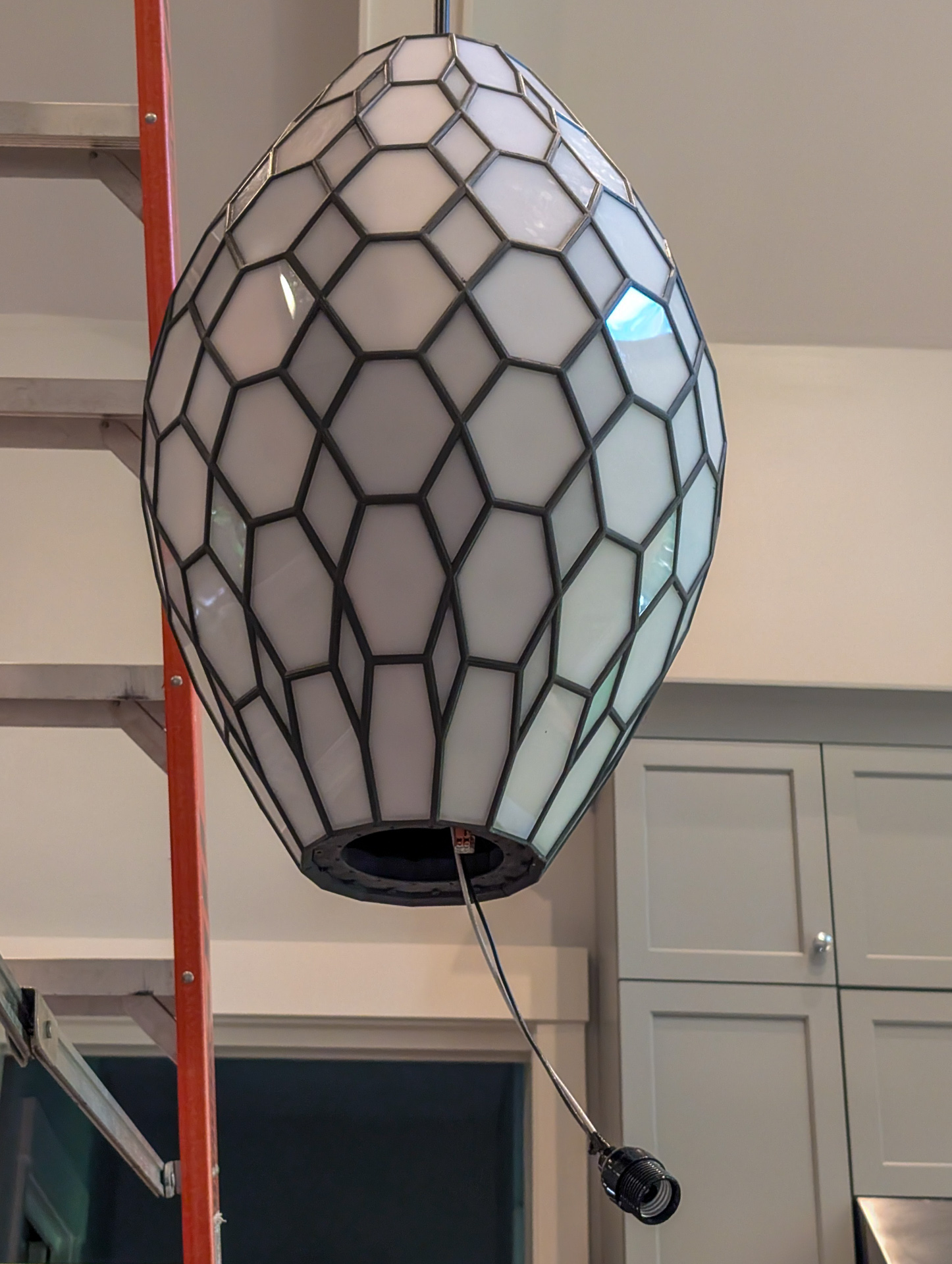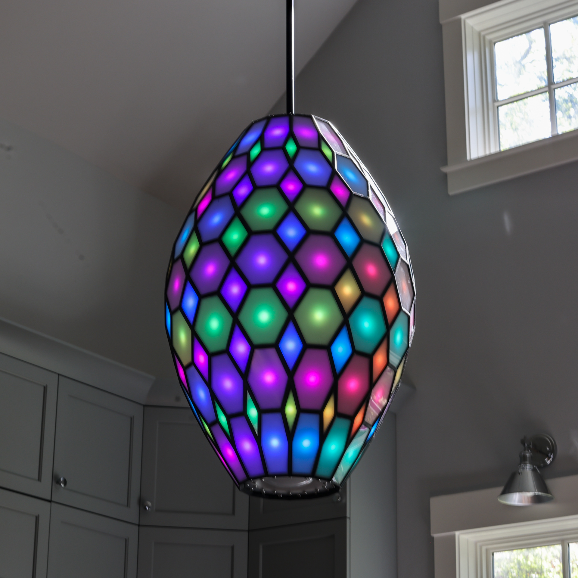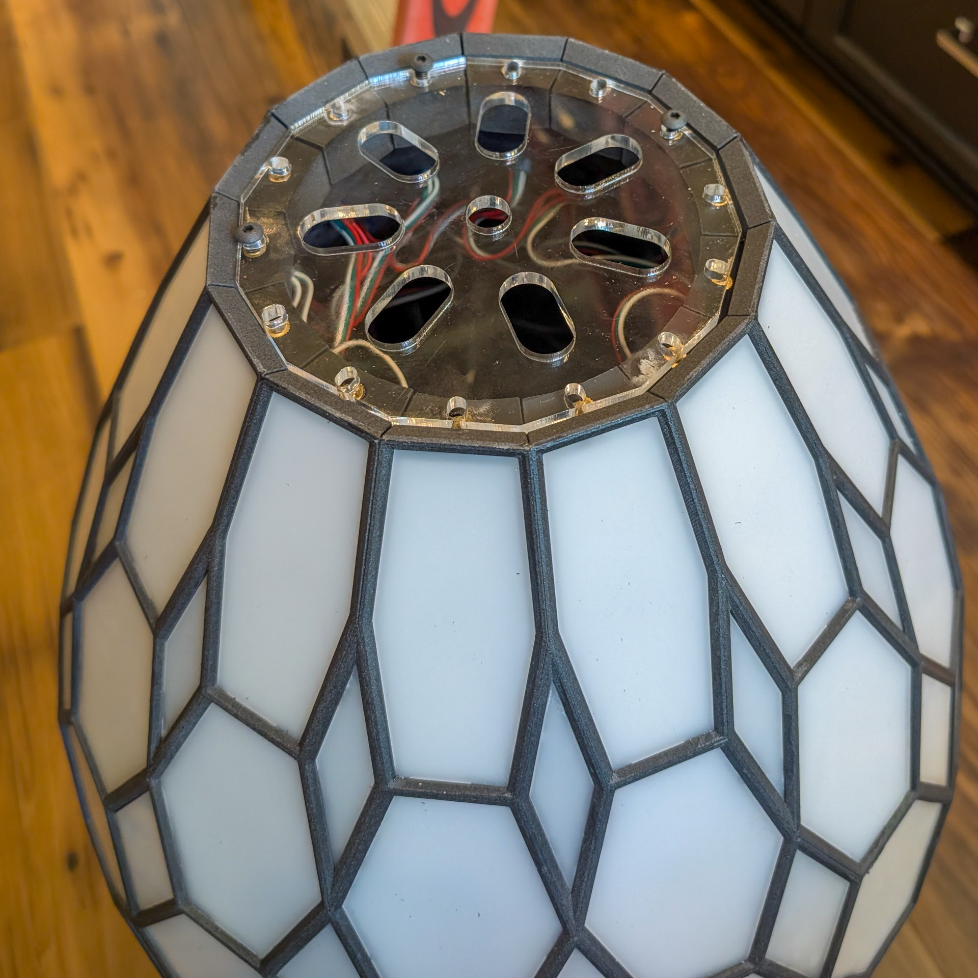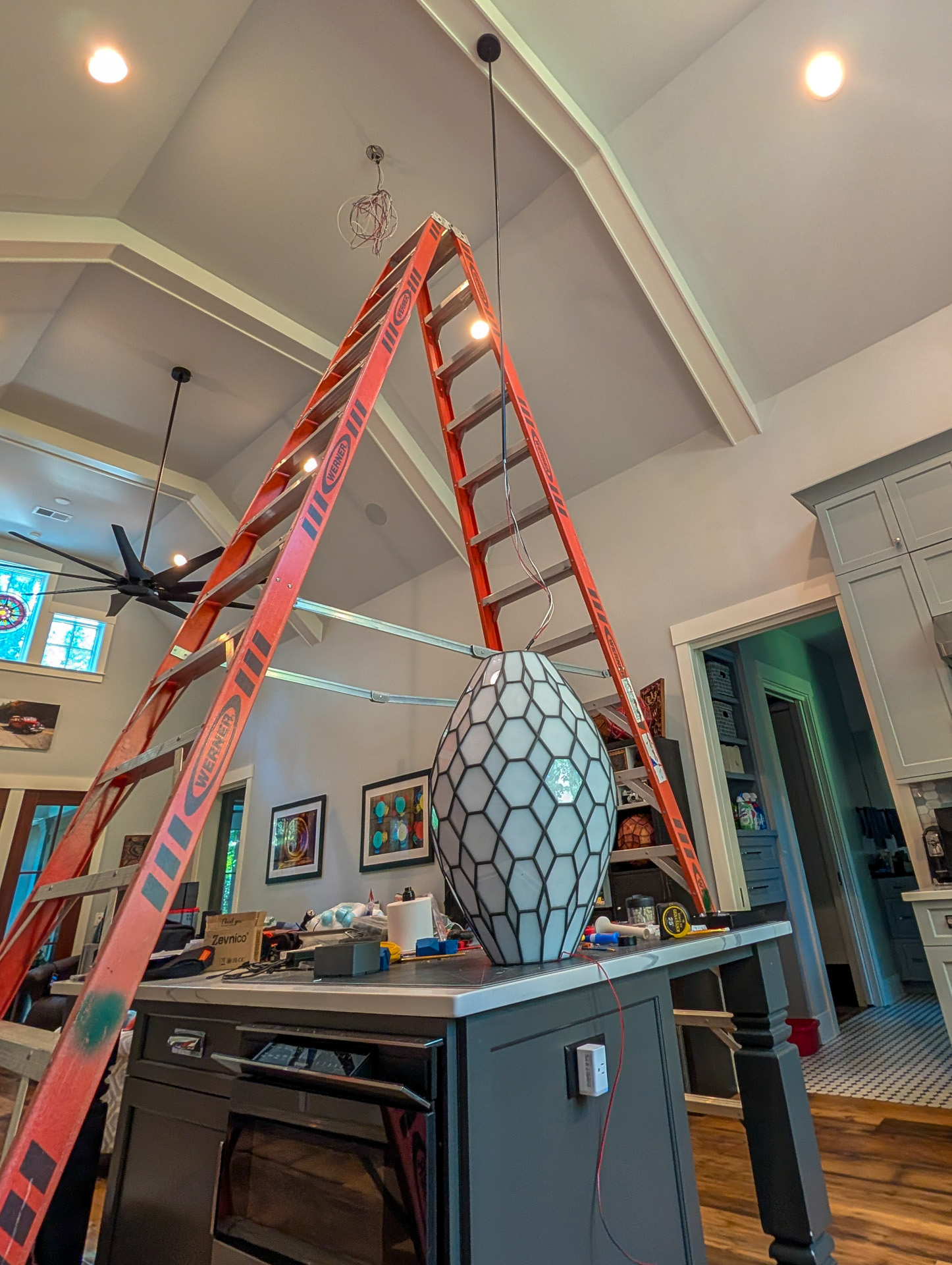 When I moved to South Carolina in 2021, I designed a fully accessible house which included a kitchen island. I purposely didn’t add any lighting over the island at the time knowing that I wanted to design and build something myself. I had many ideas, but eventually landed on creating an object that would expand on my polyhedral design capabilities, and add a unique WLED programmable lighting fixture, as well as a recessed can light to shine down on the island. This is the largest project I have done on any of my maker machines, and uses a combination of 3D printed parts and laser cut faces. I plan on making a second one to match, but this post contains the details of finishing the first one. I needed a lot of assistance on this due to my disability, so it took a few months and many sessions to complete. I’ll post pics after the second on is complete later this year.