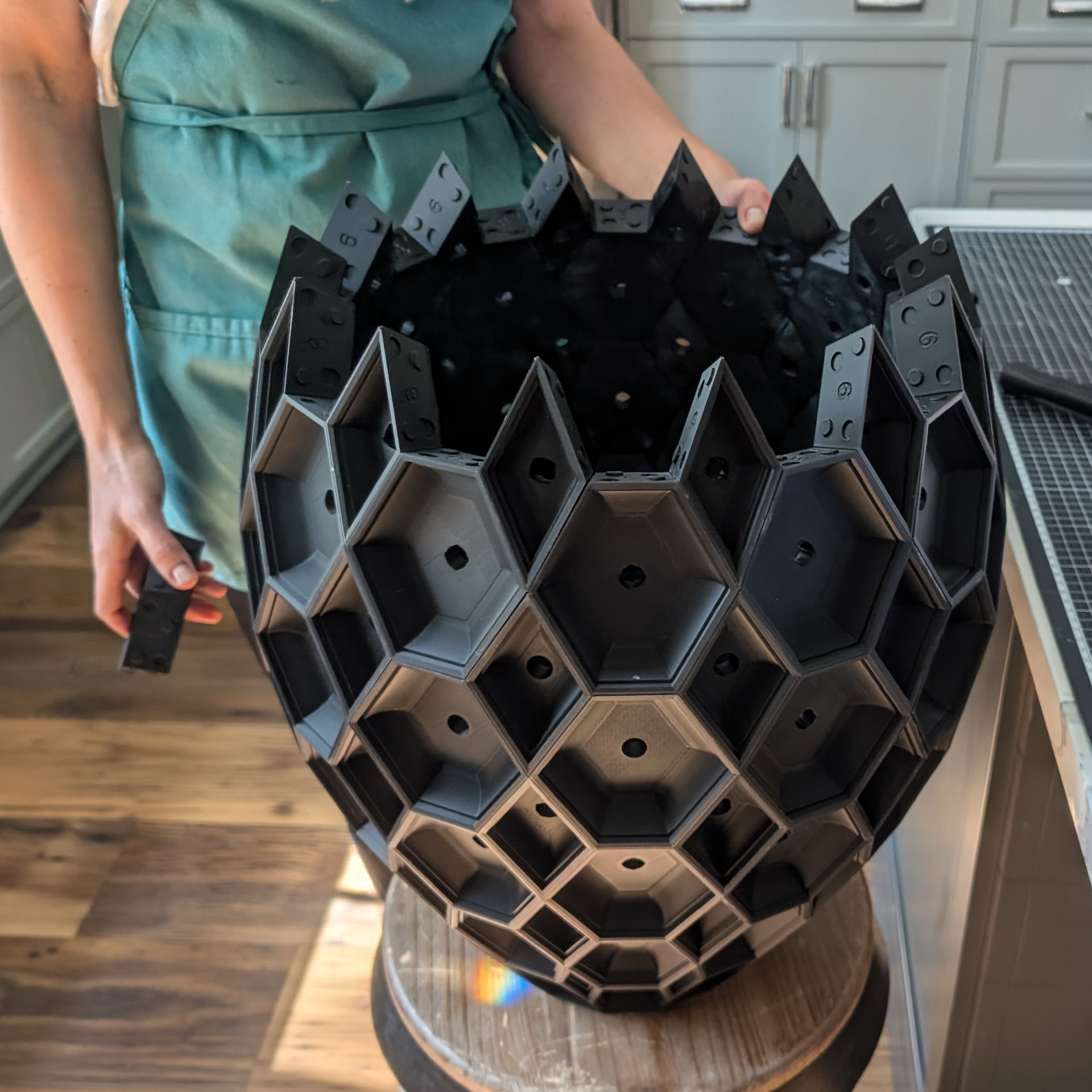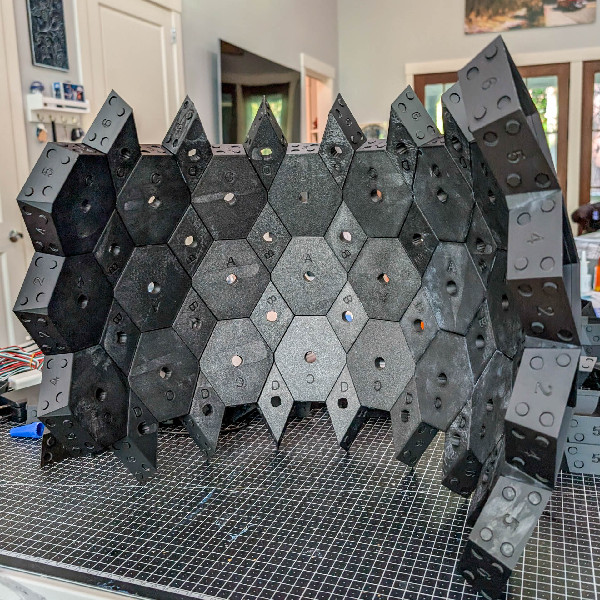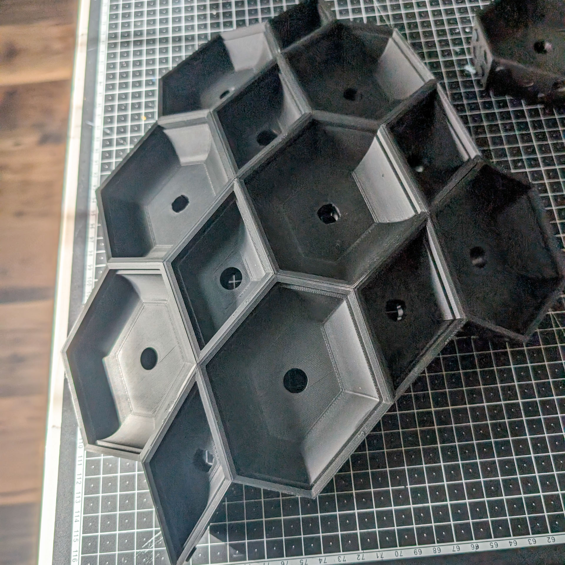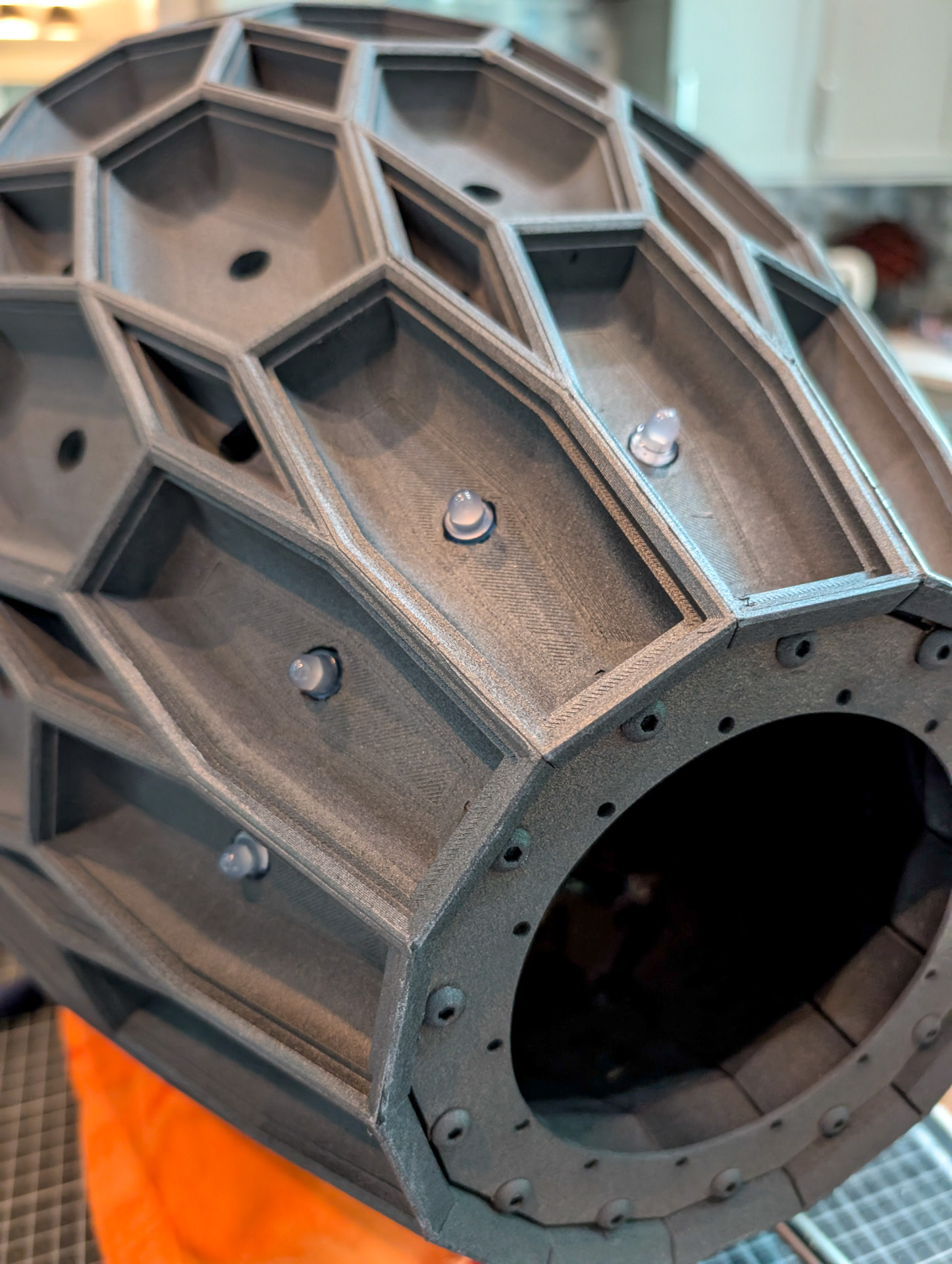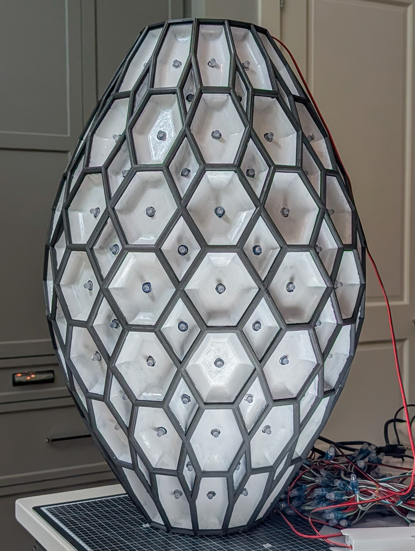 When I moved to South Carolina in 2021, I designed a fully accessible house which included a kitchen island. I purposely didn’t add any lighting over the island at the time knowing that I wanted to design and build something myself. I had many ideas, but eventually landed on creating an object that would expand on my polyhedral design capabilities, and add a unique WLED programmable lighting fixture, as well as a recessed can light to shine down on the island. This is the largest project I have done on any of my maker machines, and uses a combination of 3D printed parts and laser cut faces. I plan on making a second one to match, but this post contains the details of finishing the first one. I needed a lot of assistance on this due to my disability, so it took a few months and many sessions to complete. I’ll post pics after the second on is complete later this year.