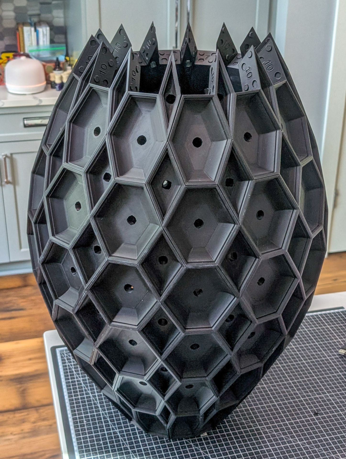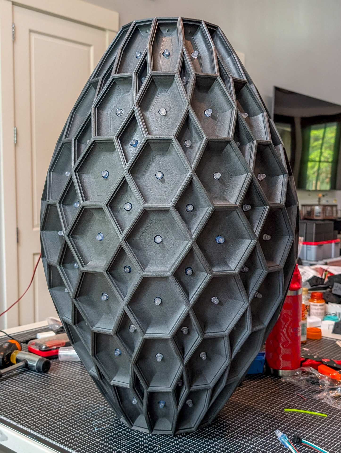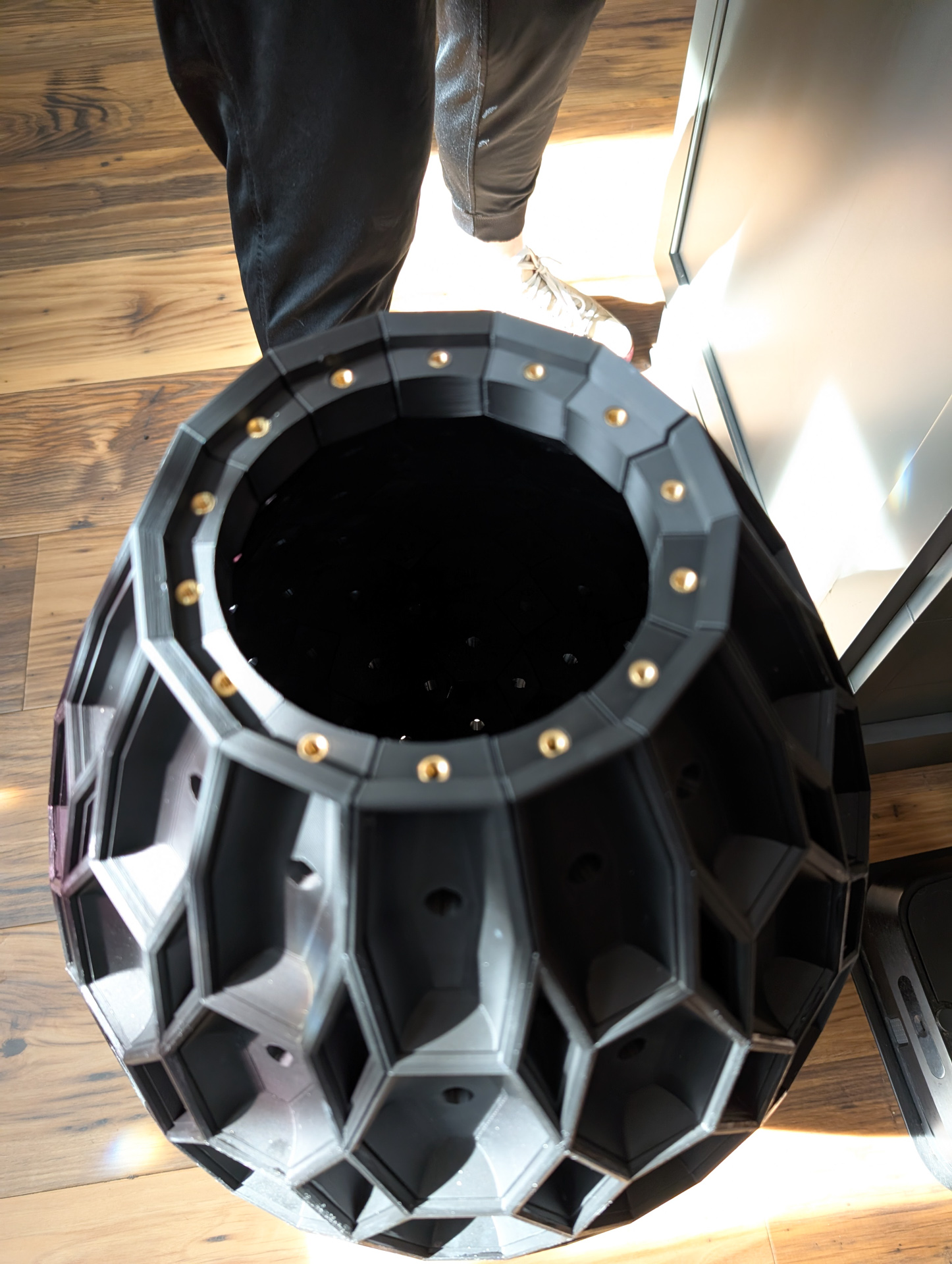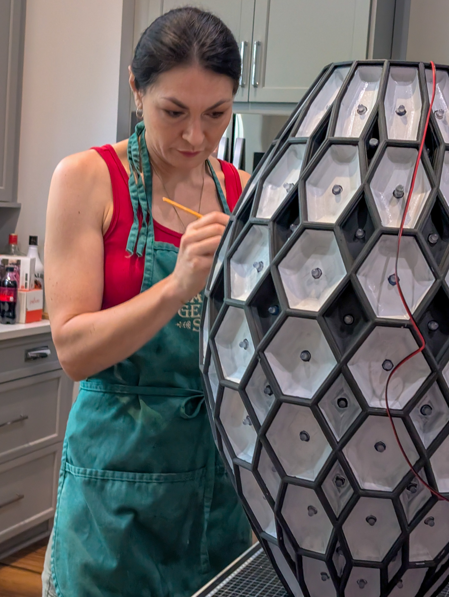 When I moved to South Carolina in 2021, I designed a fully accessible house which included a kitchen island. I purposely didn’t add any lighting over the island at the time knowing that I wanted to design and build something myself. I had many ideas, but eventually landed on creating an object that would expand on my polyhedral design capabilities, and add a unique WLED programmable lighting fixture, as well as a recessed can light to shine down on the island. This is the largest project I have done on any of my maker machines, and uses a combination of 3D printed parts and laser cut faces. I plan on making a second one to match, but this post contains the details of finishing the first one. I needed a lot of assistance on this due to my disability, so it took a few months and many sessions to complete. I’ll post pics after the second on is complete later this year.