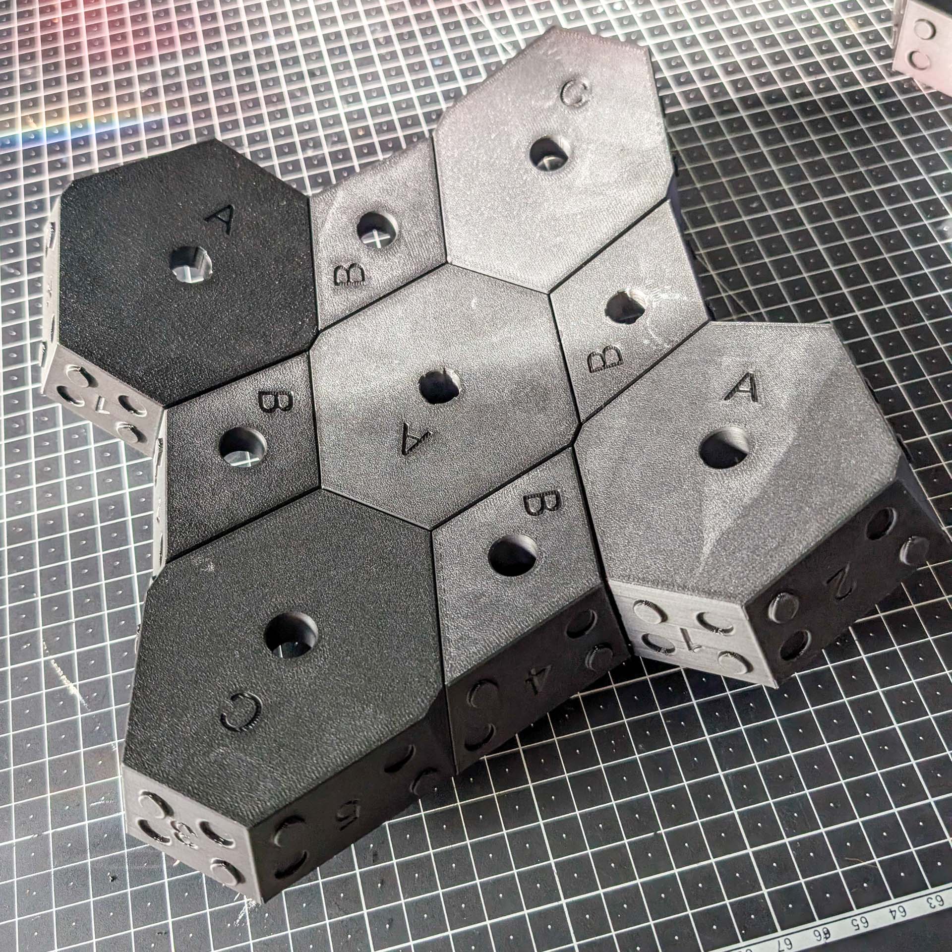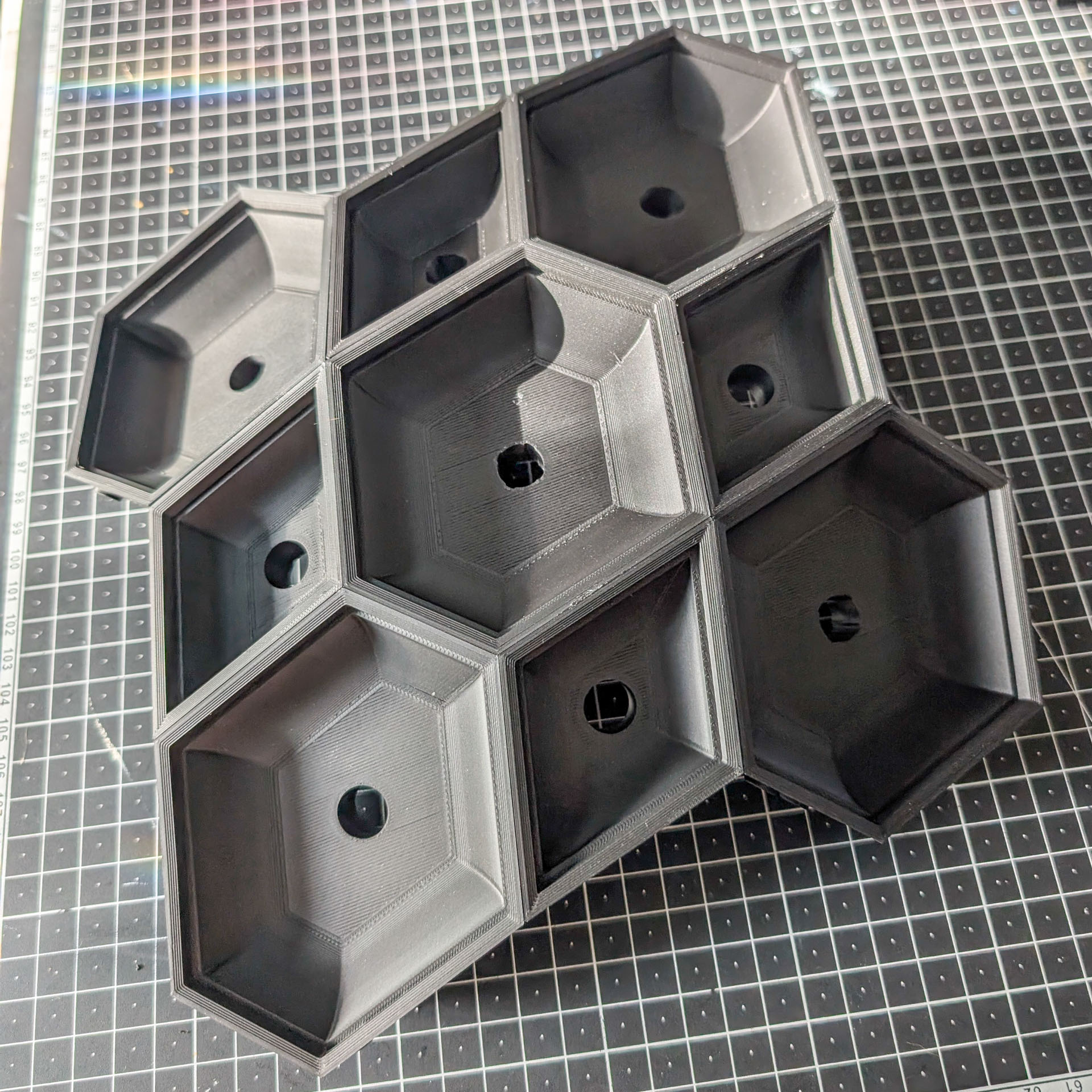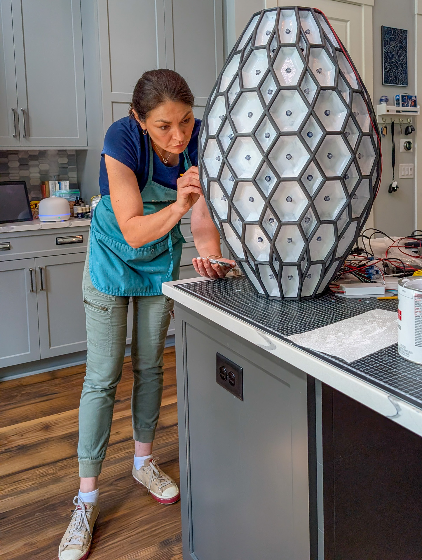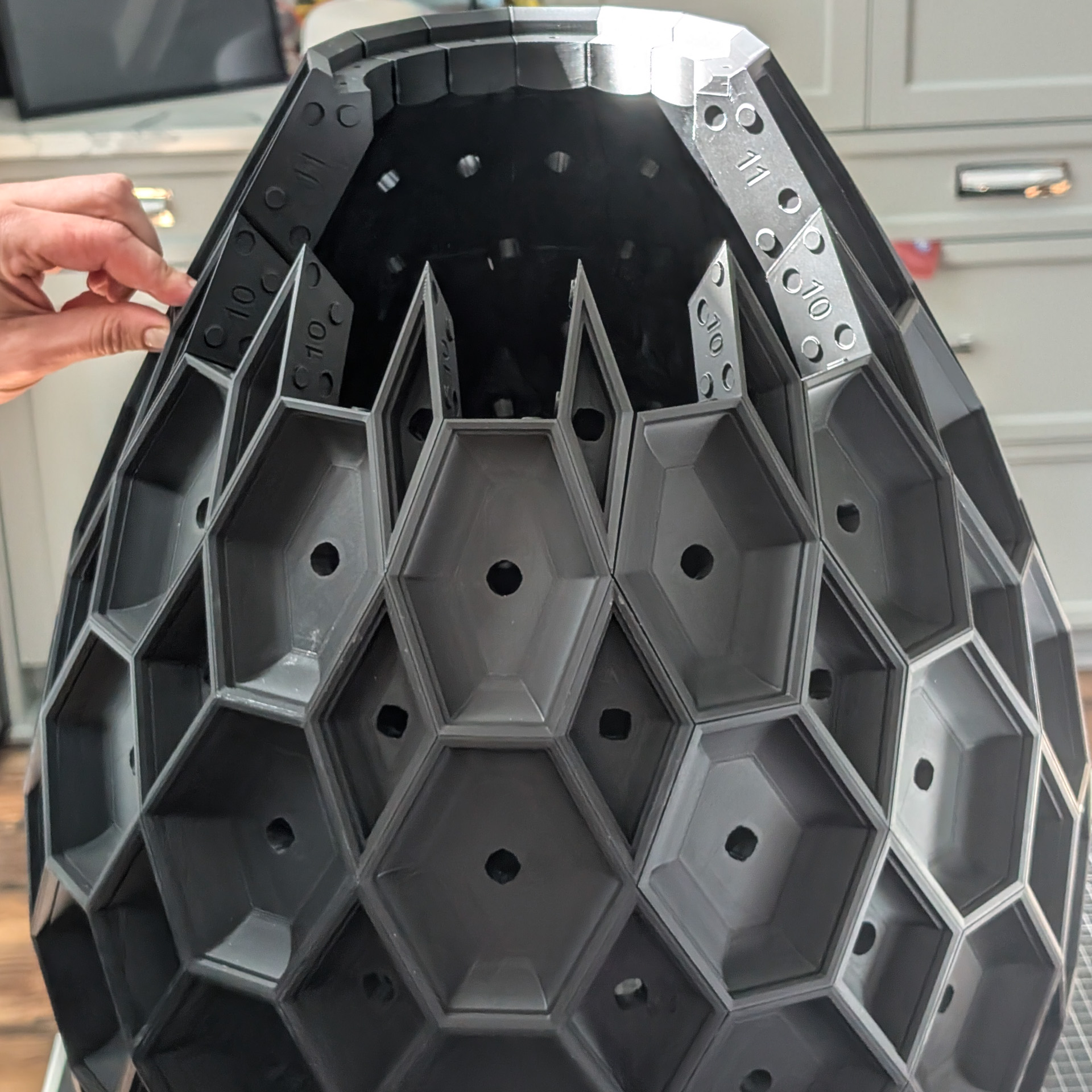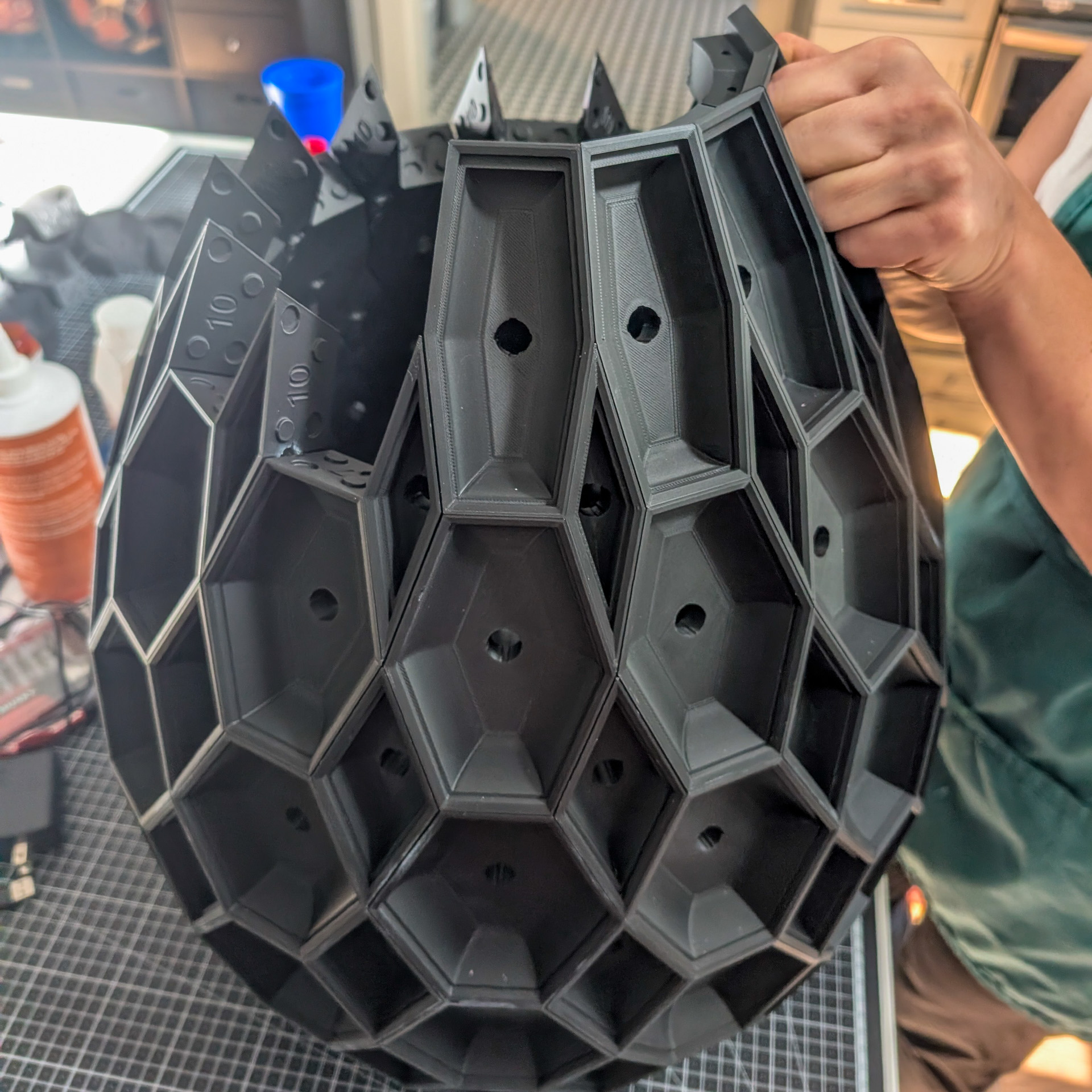 When I moved to South Carolina in 2021, I designed a fully accessible house which included a kitchen island. I purposely didn’t add any lighting over the island at the time knowing that I wanted to design and build something myself. I had many ideas, but eventually landed on creating an object that would expand on my polyhedral design capabilities, and add a unique WLED programmable lighting fixture, as well as a recessed can light to shine down on the island. This is the largest project I have done on any of my maker machines, and uses a combination of 3D printed parts and laser cut faces. I plan on making a second one to match, but this post contains the details of finishing the first one. I needed a lot of assistance on this due to my disability, so it took a few months and many sessions to complete. I’ll post pics after the second on is complete later this year.