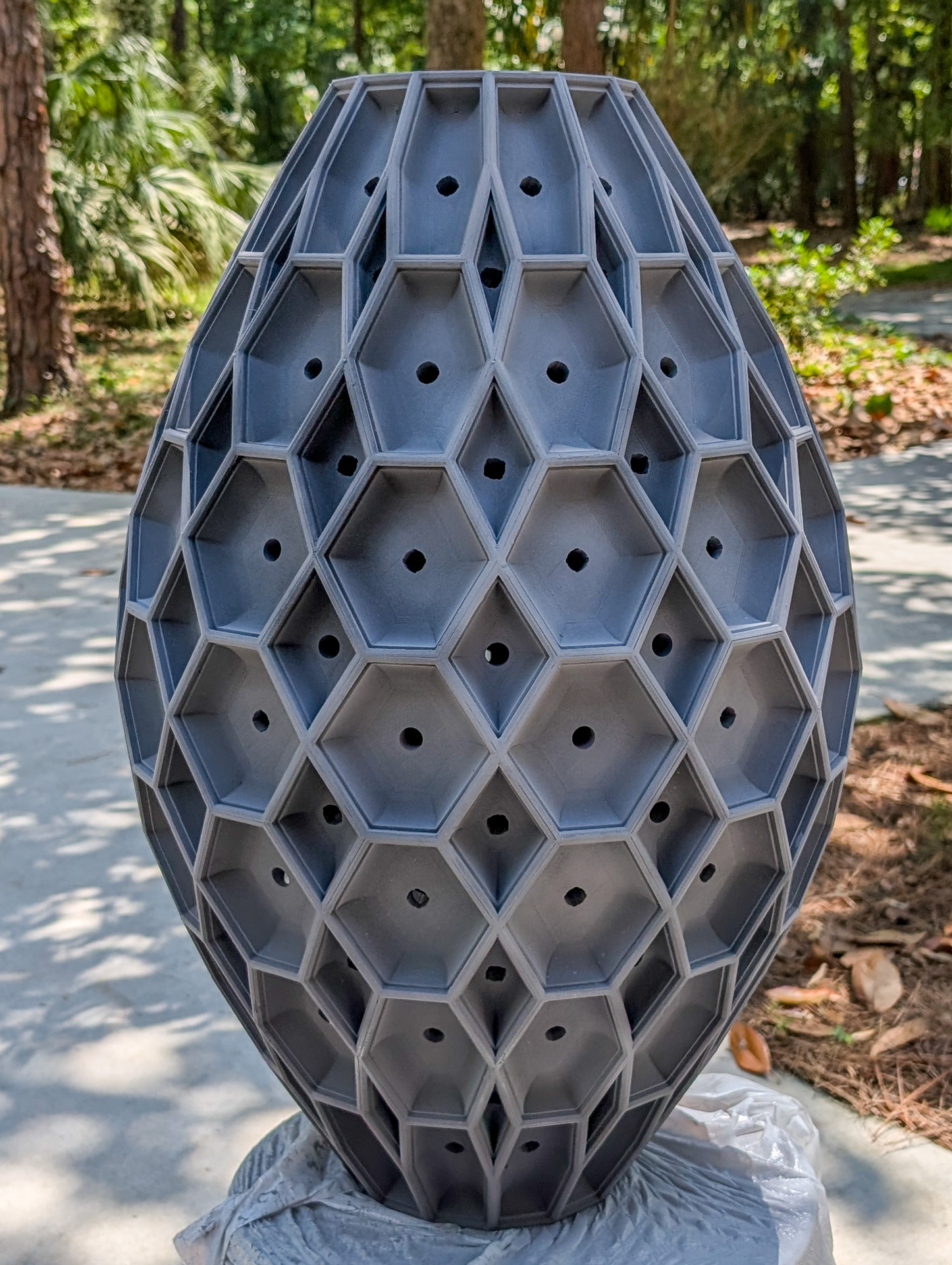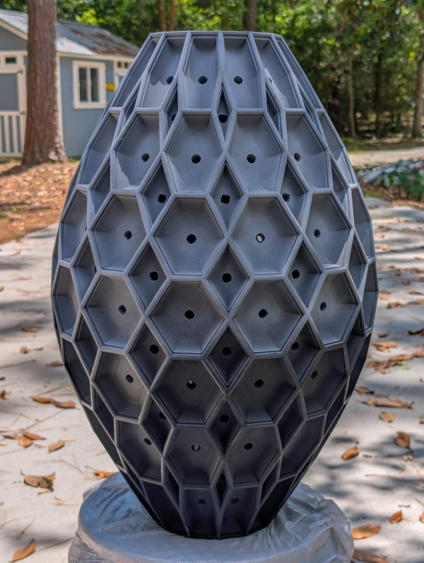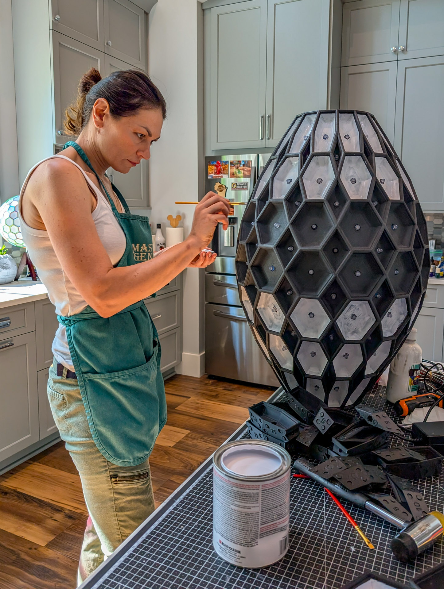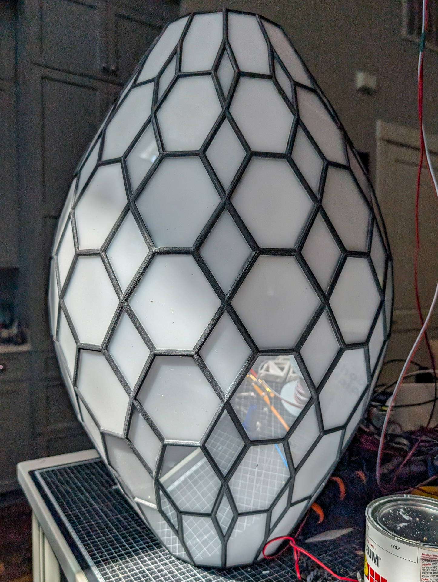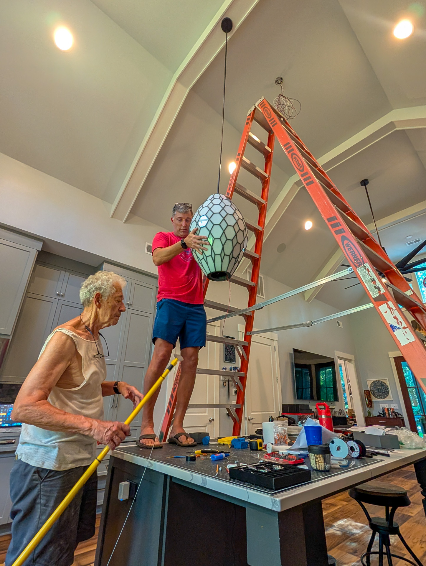 When I moved to South Carolina in 2021, I designed a fully accessible house which included a kitchen island. I purposely didn’t add any lighting over the island at the time knowing that I wanted to design and build something myself. I had many ideas, but eventually landed on creating an object that would expand on my polyhedral design capabilities, and add a unique WLED programmable lighting fixture, as well as a recessed can light to shine down on the island. This is the largest project I have done on any of my maker machines, and uses a combination of 3D printed parts and laser cut faces. I plan on making a second one to match, but this post contains the details of finishing the first one. I needed a lot of assistance on this due to my disability, so it took a few months and many sessions to complete. I’ll post pics after the second on is complete later this year.